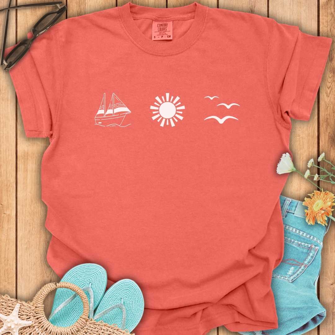 Sailboat, Sunset & Birds T-Shirt